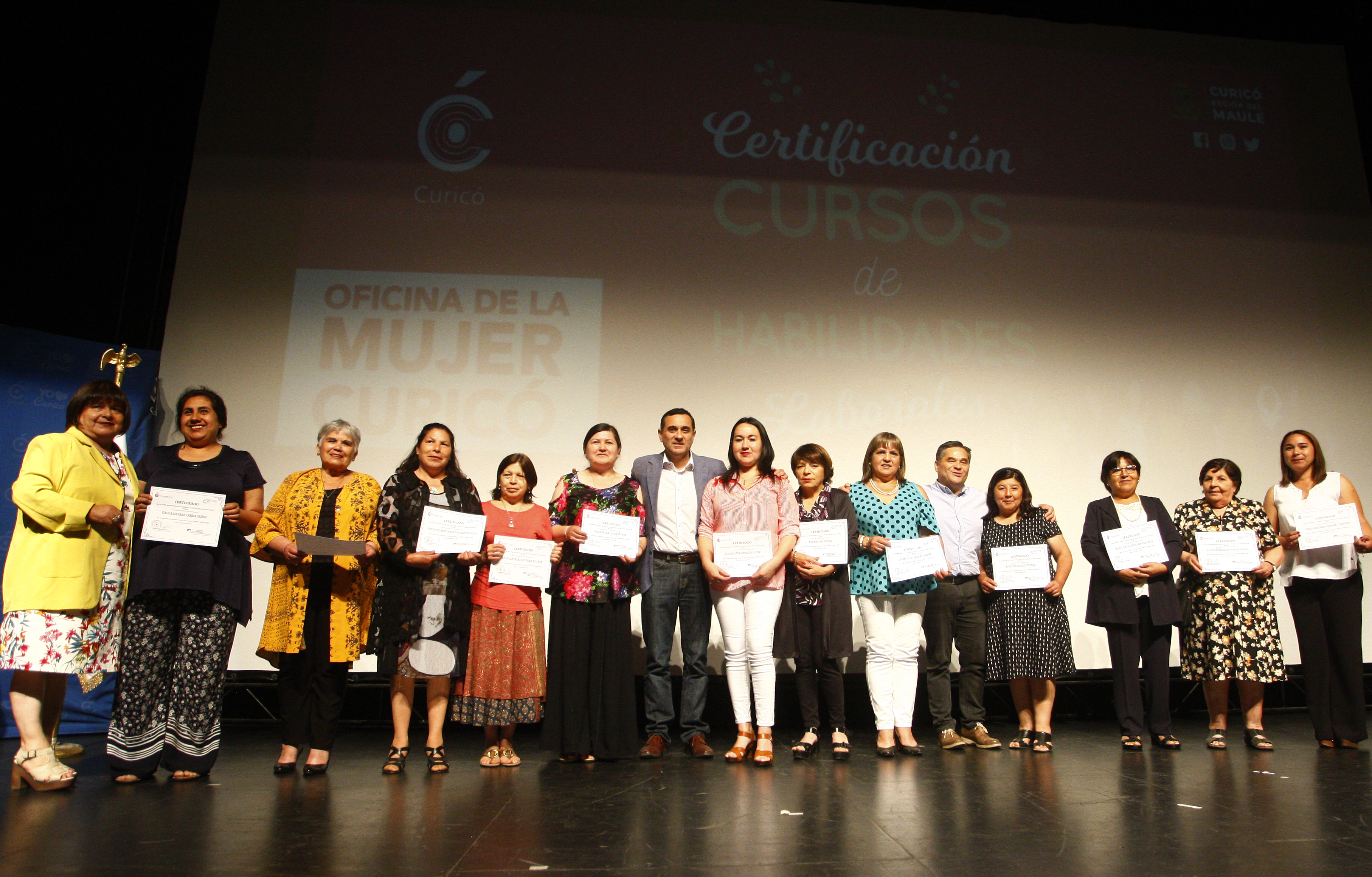 La actividad que fue presidida por el alcalde Javier Muñoz, acompañado por los concejales Javier Ahumada, Raimundo Canquil, Sebastián Maturana y Sonia Maturana, además por la Directora de Dideco Pilar Contardo y de las monitoras de los distintos talleres, se desarrolló en forma reciente en el Teatro Provincial de Curicó, instancia en la cual 65 mujeres recibieron su certificación en cursos de Corte y Confección, 30 en la especialidad de Manicure, 24 en Maquillaje y 17 en Peluquería.